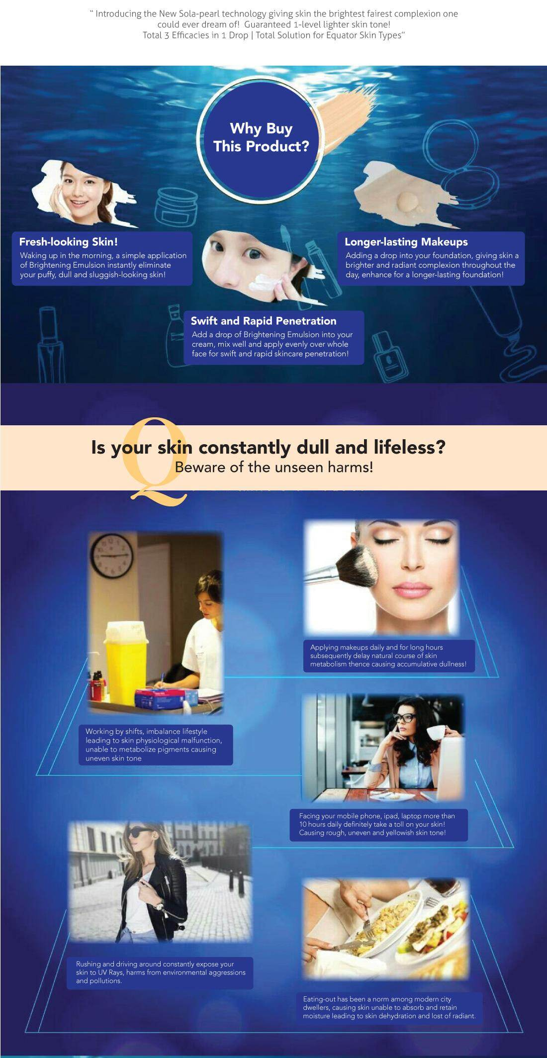 Introducing the New sola-pearl technology giving skin the brightest fairest complexion one could ever dream of! Guaranteed 1-level lighter skin tone!