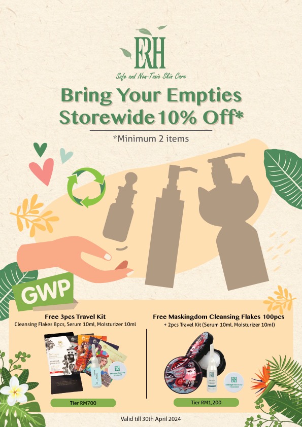 Bring your empties to us and enjoy 10% OFF any of your purchases during this April Month! On top of it, get rewarded with your favourite travel kits when you spend above each tiers!